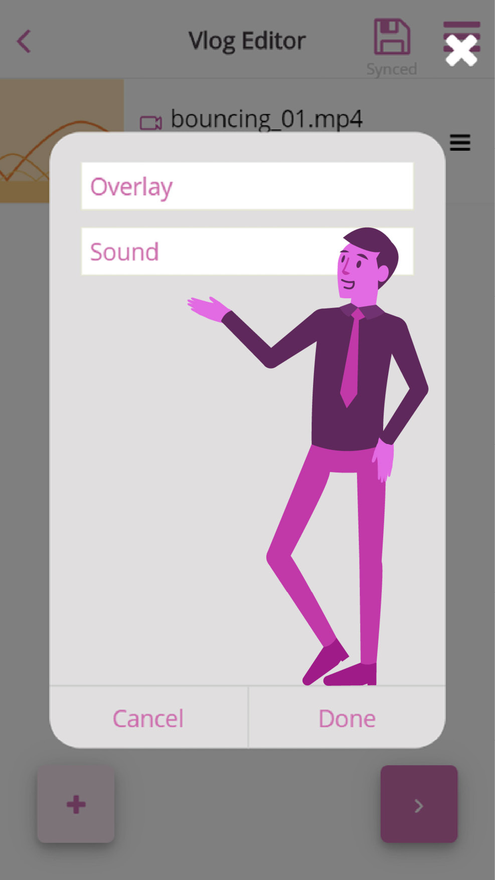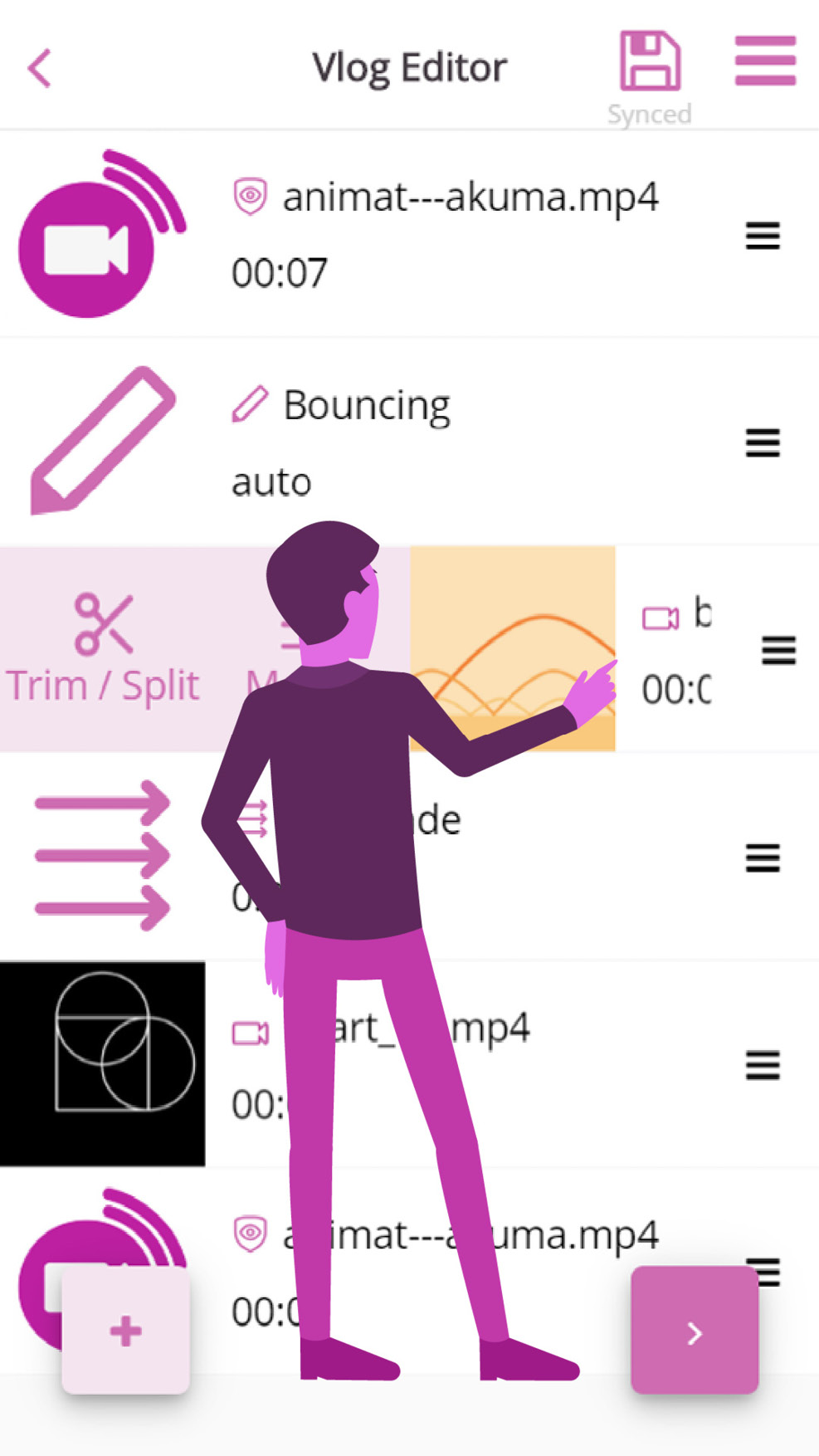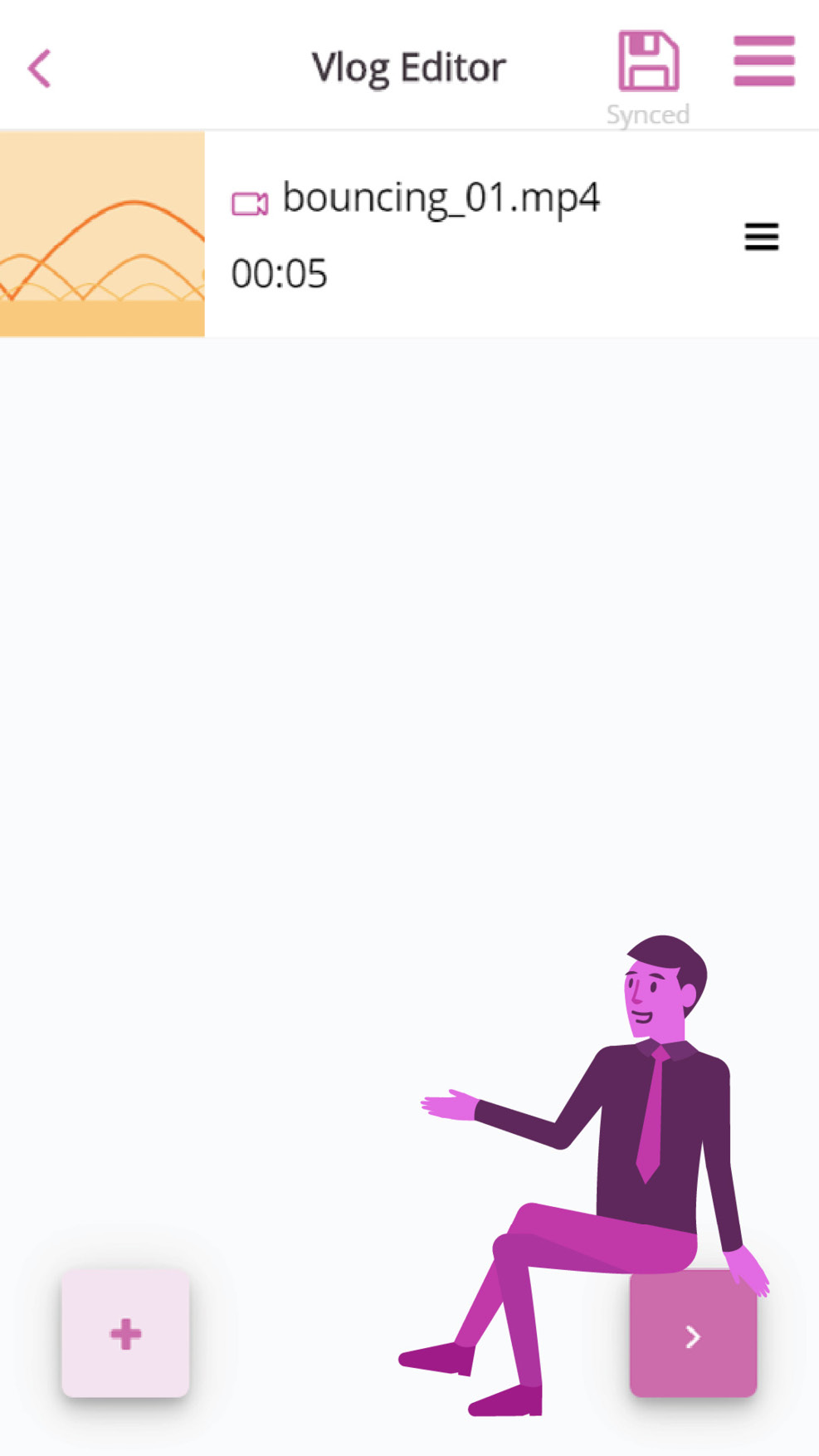 After recording/selecting a video, the recorded or selected video will appear in what we like to call the “vlog editor”.