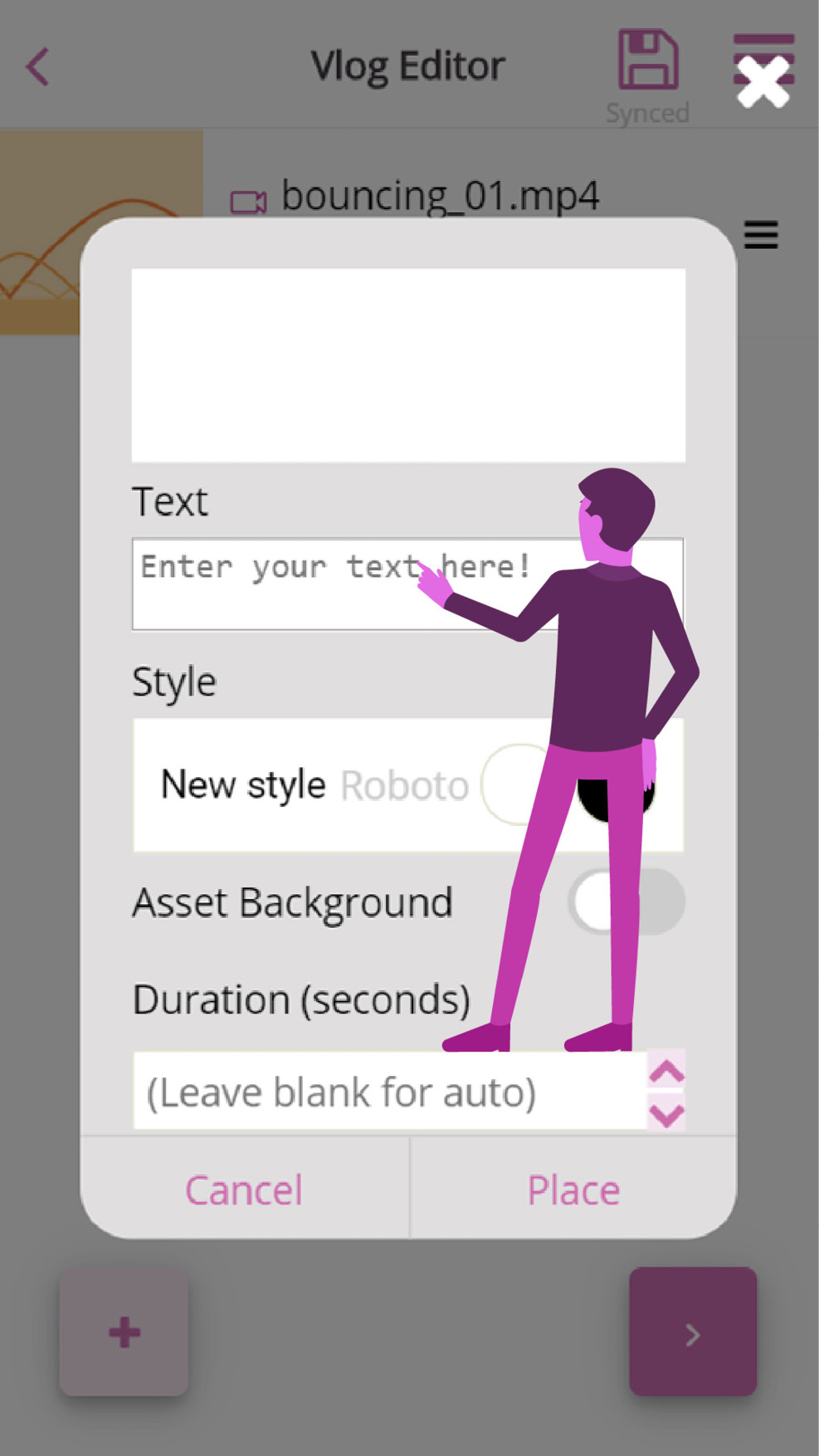 With catchy titles, your video content becomes even more relevant for your target audience. Enter your desirable text, then press the “place” button to place the title in the “vlog editor”.