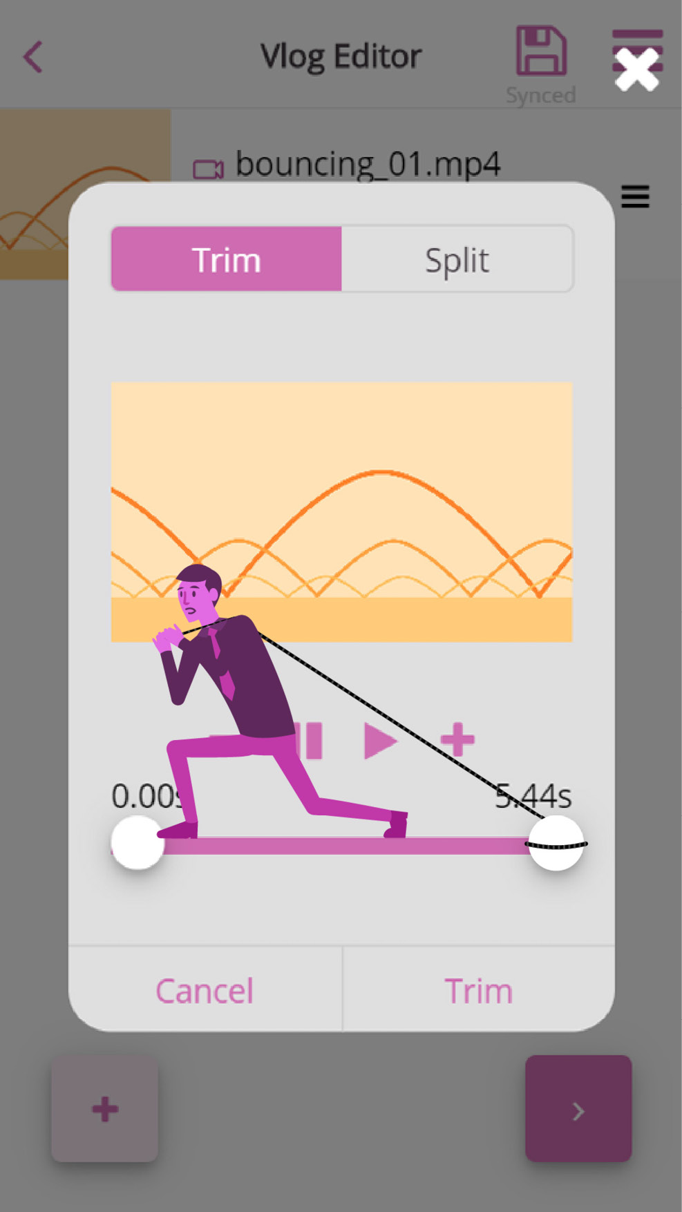 Click the “trim/split” option and a pop-up will show up, letting you pick between “trim” or “split”.