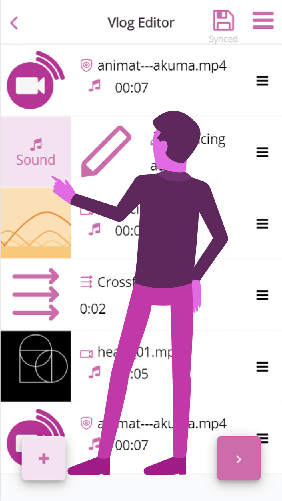 To be able to use the “sound” option, you first have to add music to the “vlog editor”.