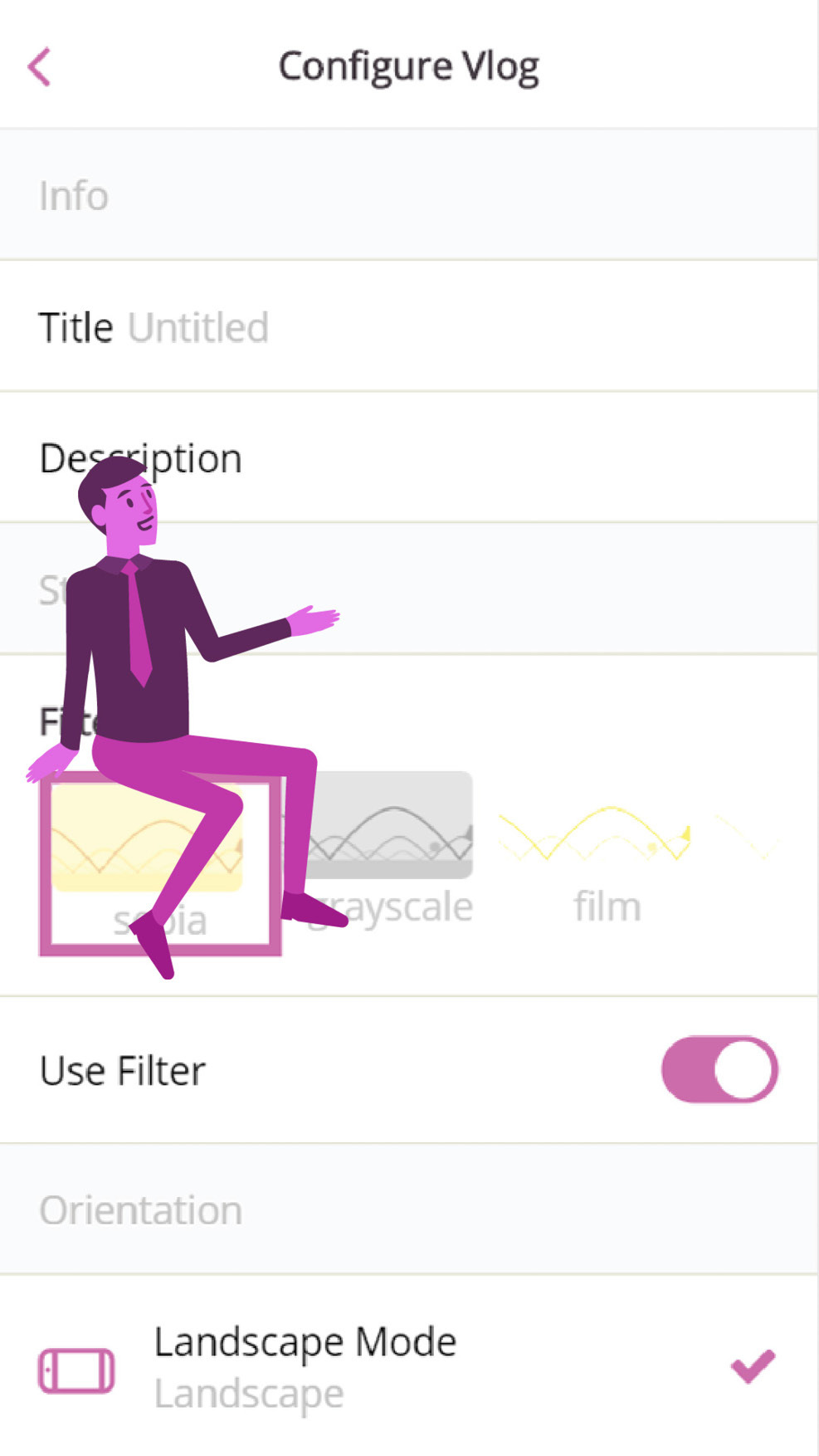 Arriving on the “configure vlog” menu, you get to add the final touches to your vlog.