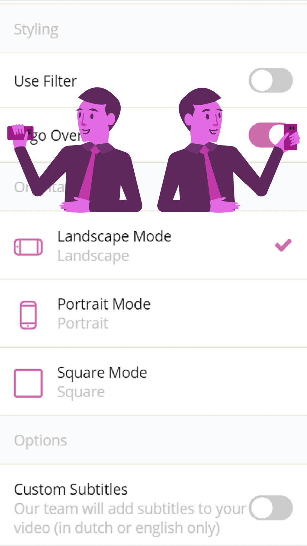Besides using a filter, you can also choose for “logo overlay”. Turning this option on, will display your logo over the entire vlog at all times.